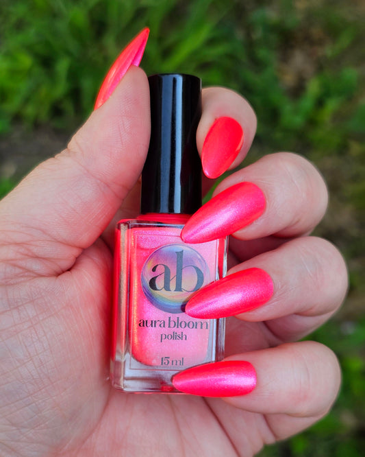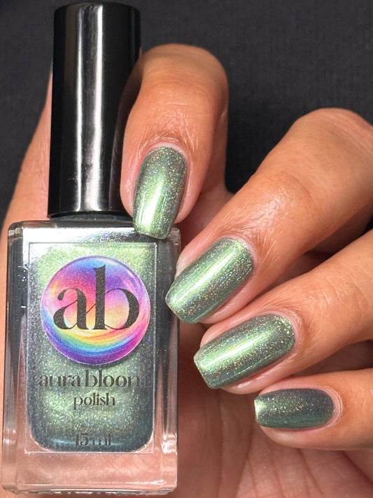 Whispers of the Wilderness is a collection of 6 polishes that are both a linear holographic and a pearlescent polish which creates an illusionary midnight star-filled sky with a pop of pearly mystical color. They are inspired by the magical and mysterious wilderness and the secrets that it keeps at night.