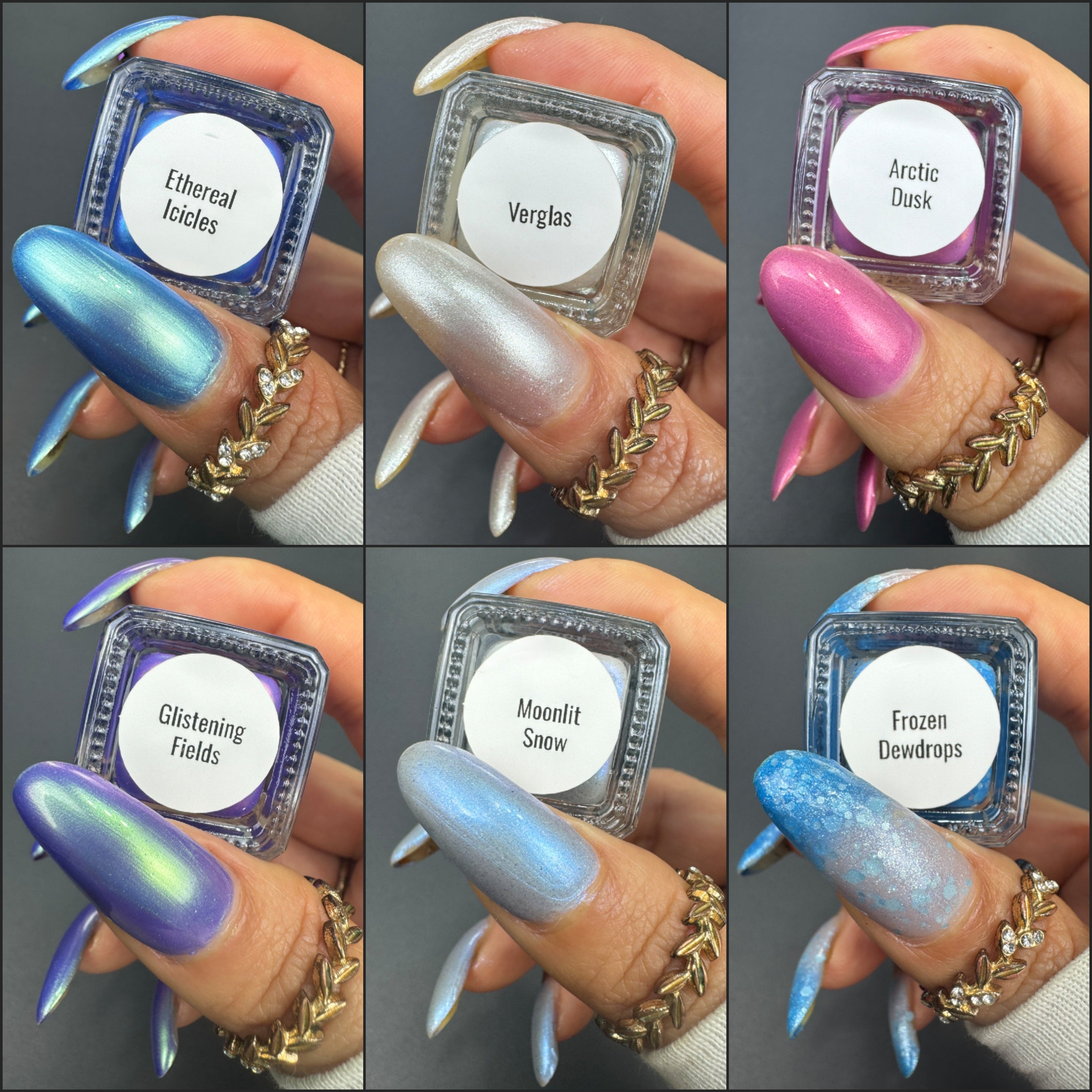 The Winter Dreamscape collection is inspired by the soft and ethereal colors of a dreamy winter landscape. From the frozen dewdrops and glistening of the first frost on a field of wildflowers in the morning to the moonlight hitting the snow at night, these colors paint the snowy canvas of a magical and beautiful winter.