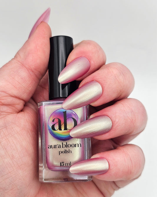 Collection of all pearlescent, shimmer, glitter, holographic, duo chrome, and chameleon nail polishes.