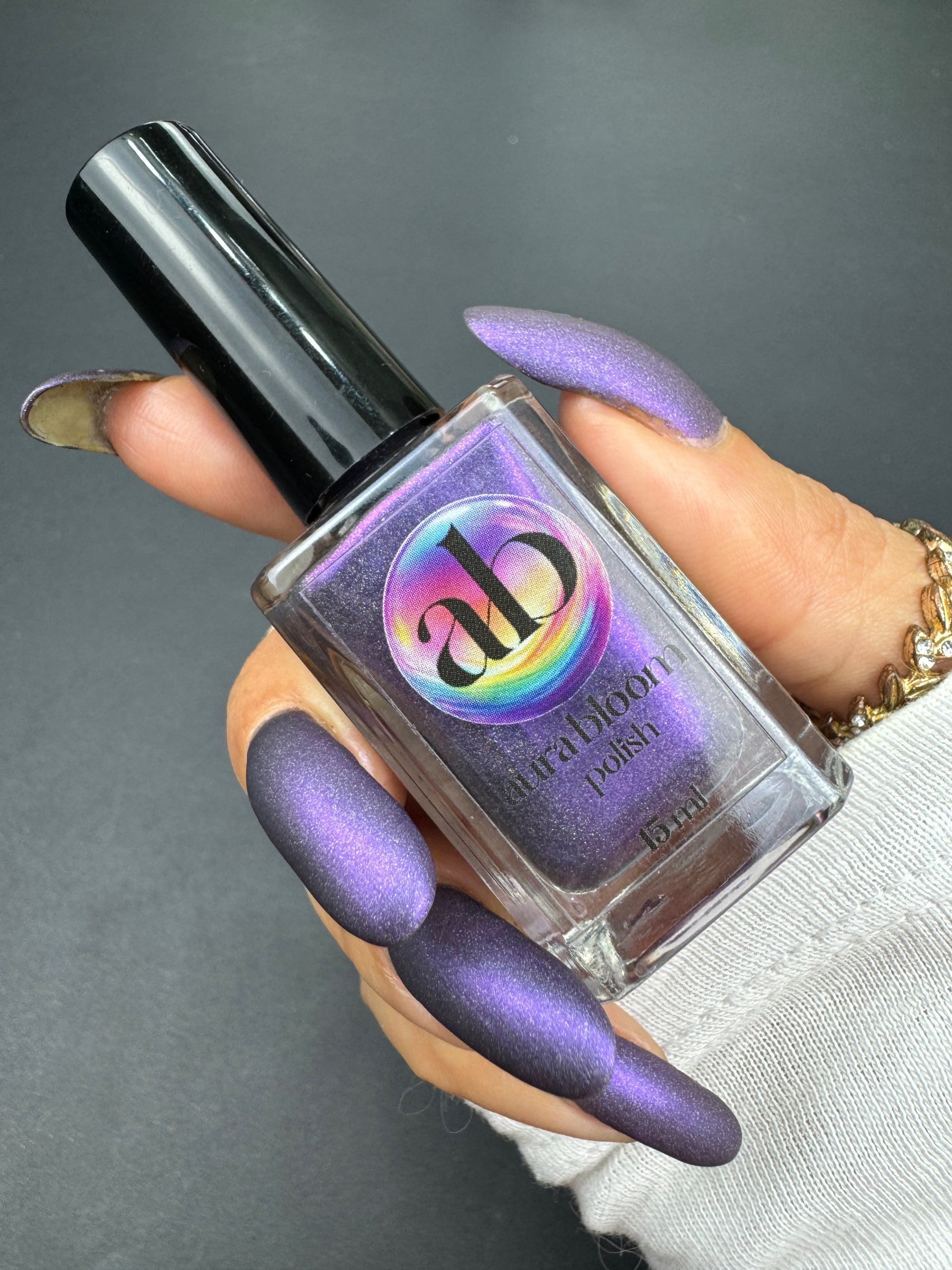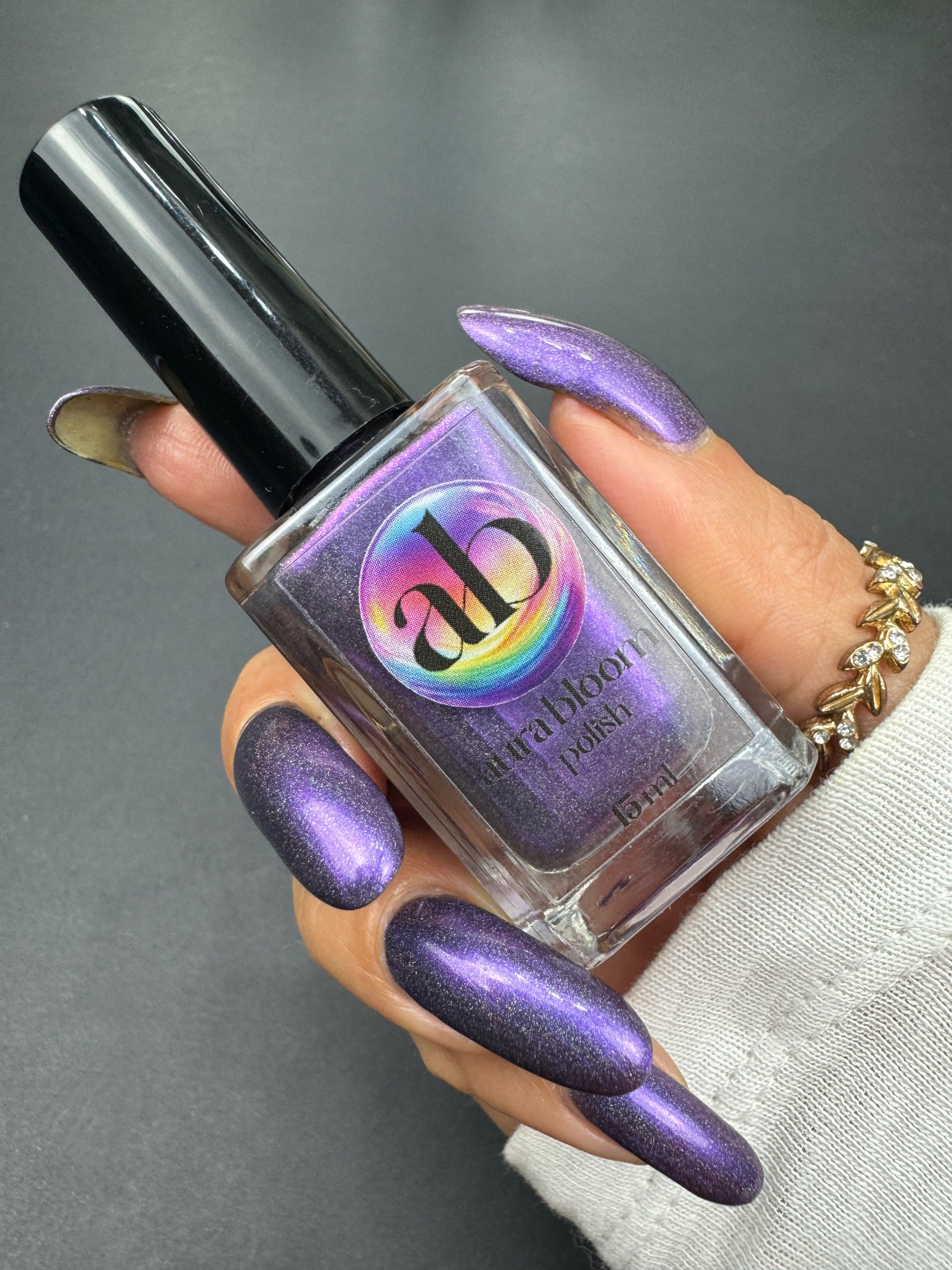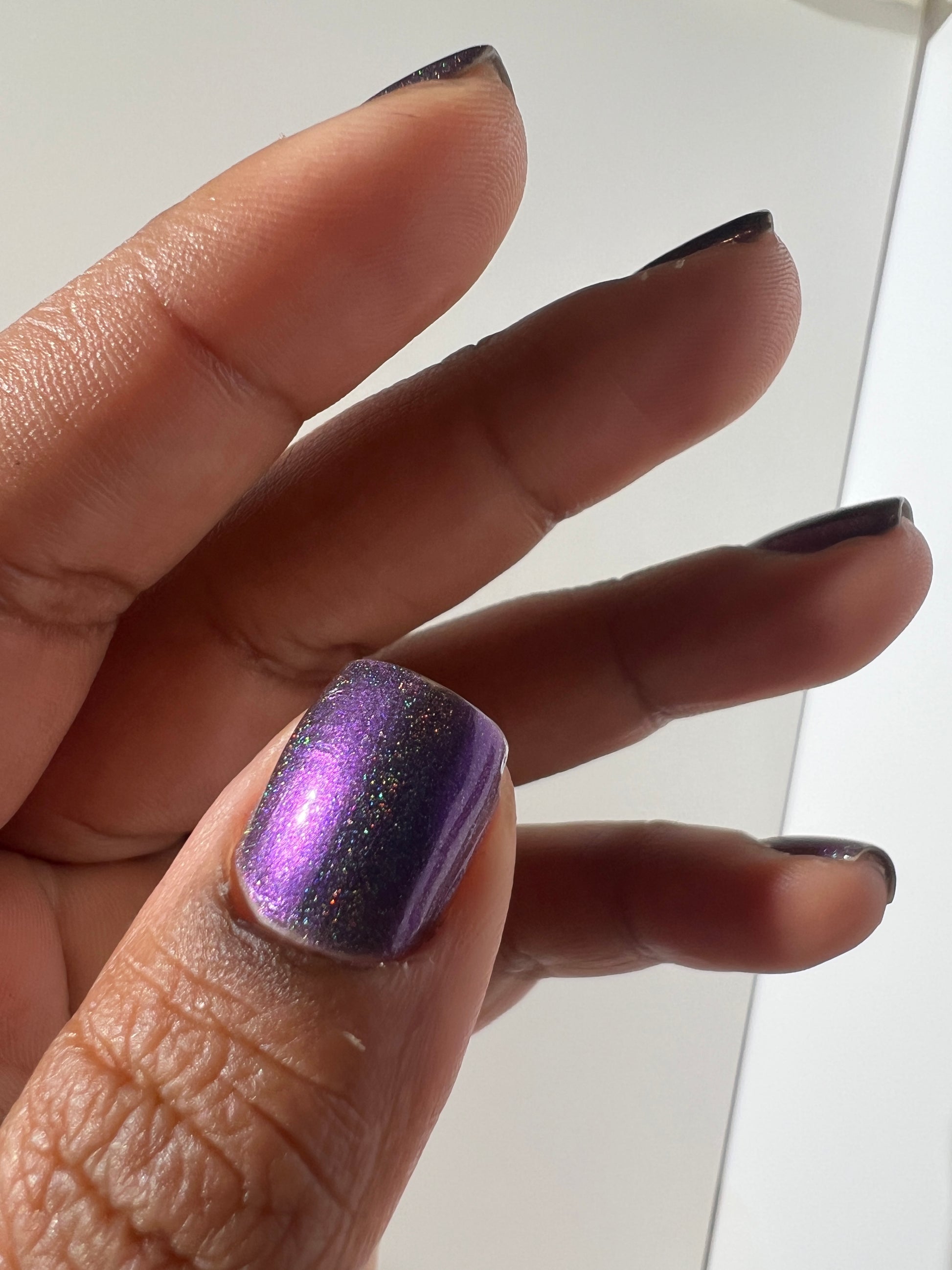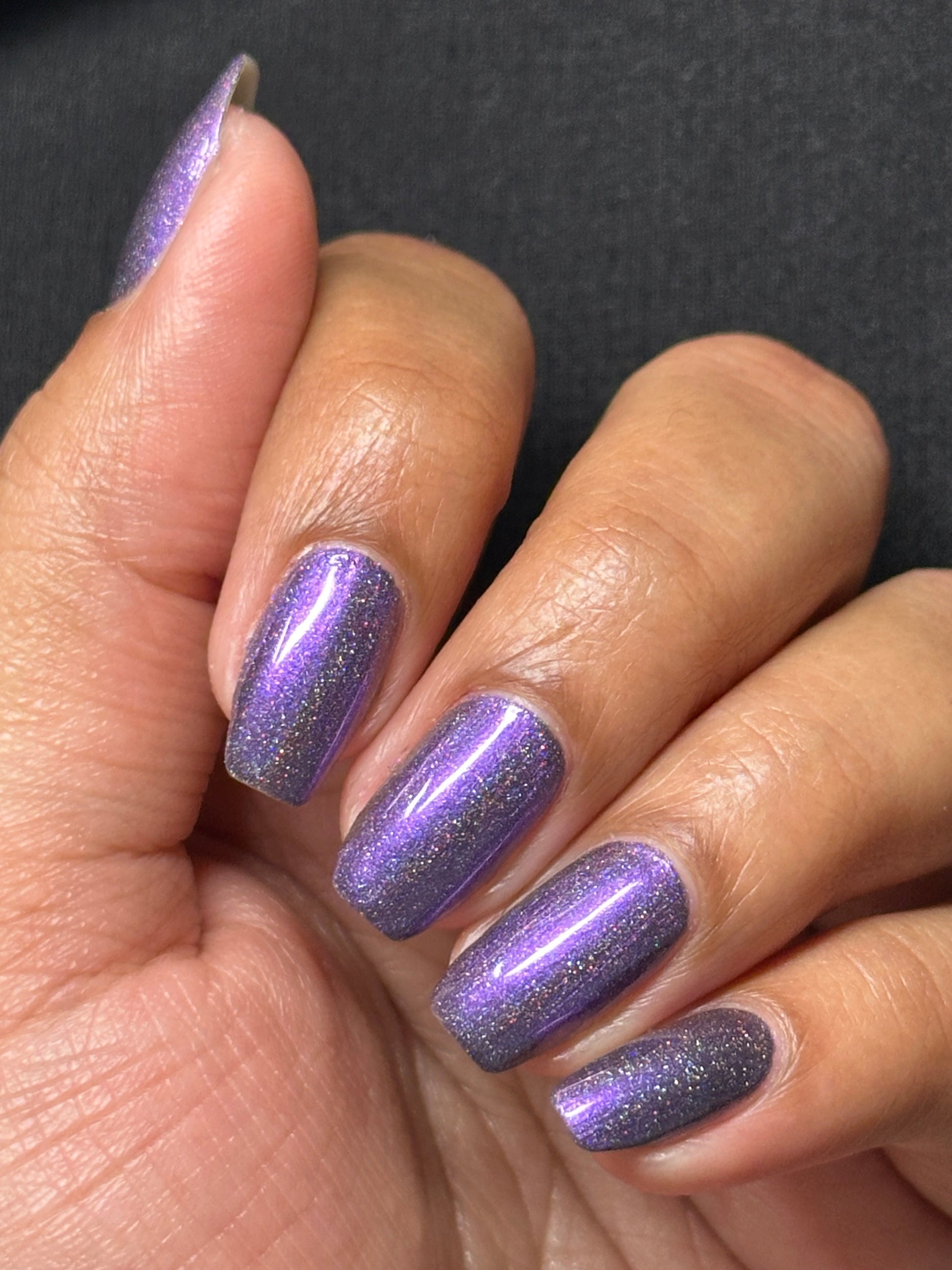 Arcane Amethyst is a black linear holographic polish with a rich purple pearlescent shimmer.