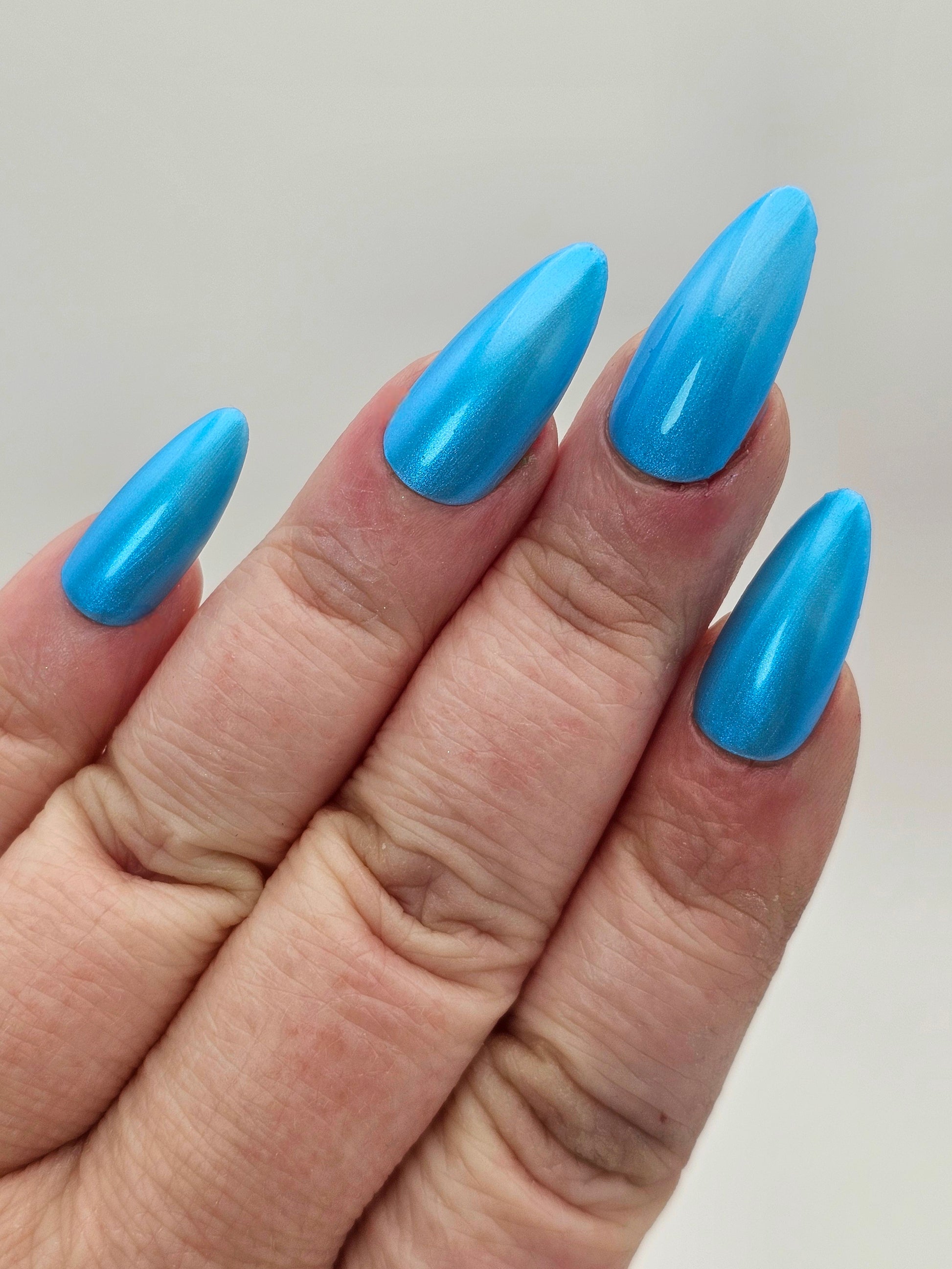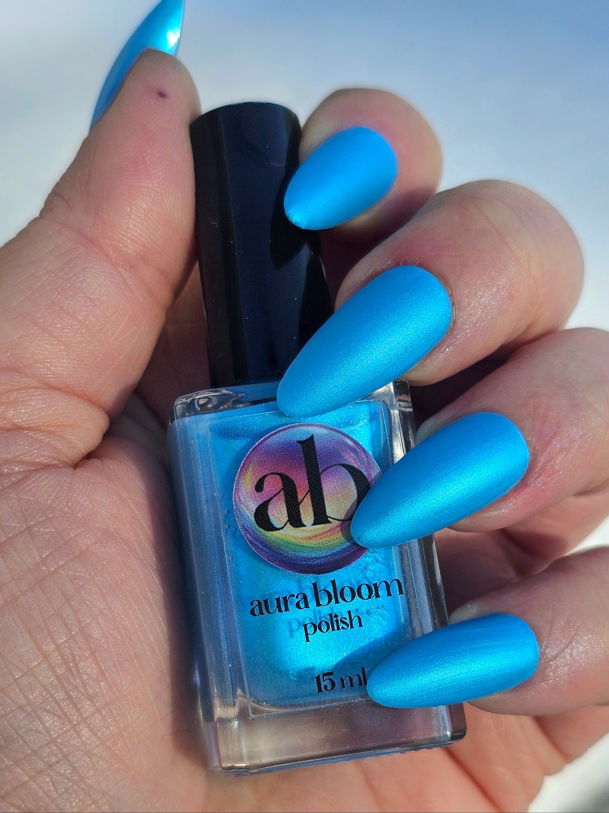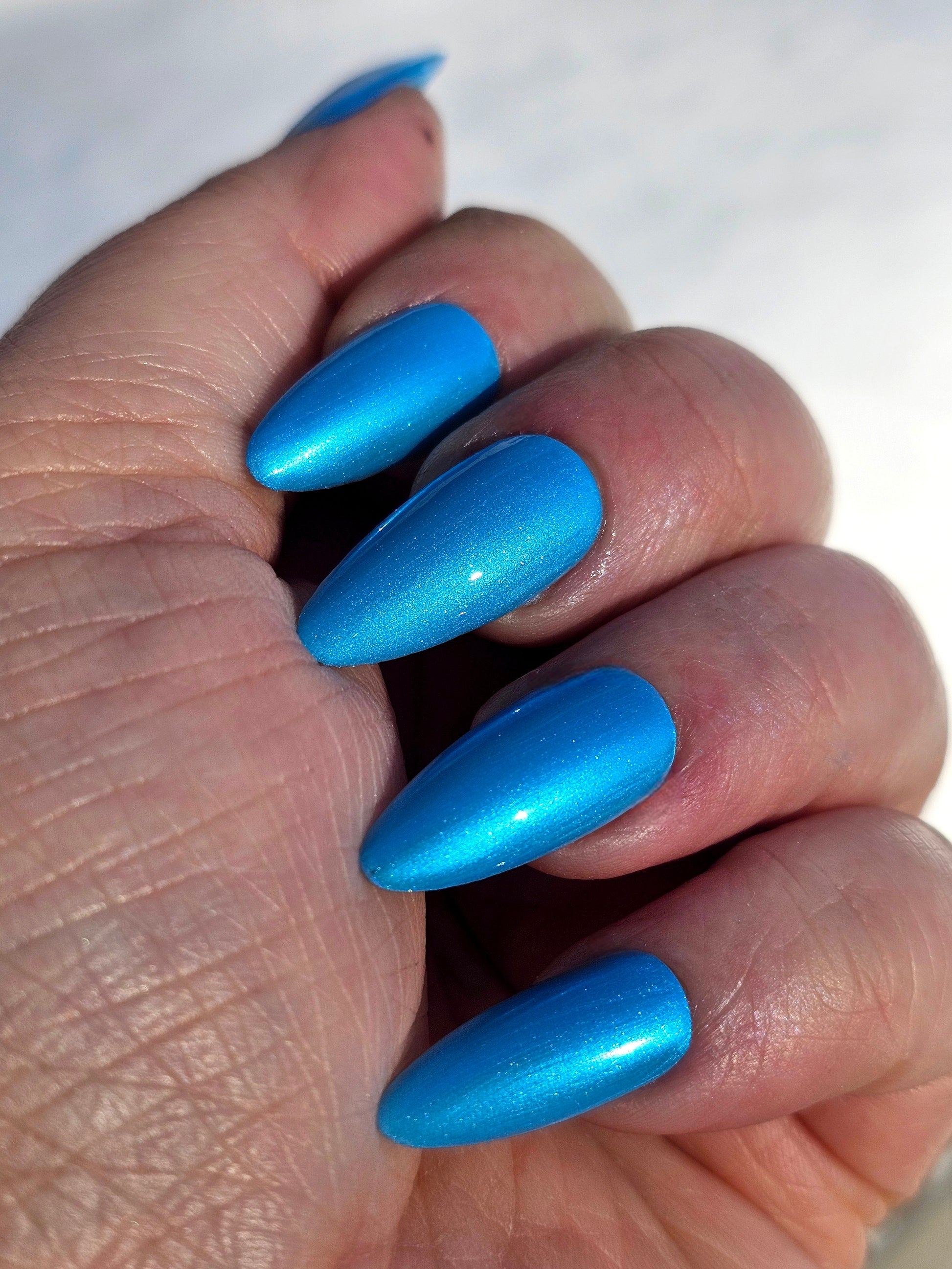 Crush ICE is a baby blue polish with a bright blue shimmer. Photos show this polish with our Flash Freeze QDTC and some photos are with the Magical Matte Top Coat.