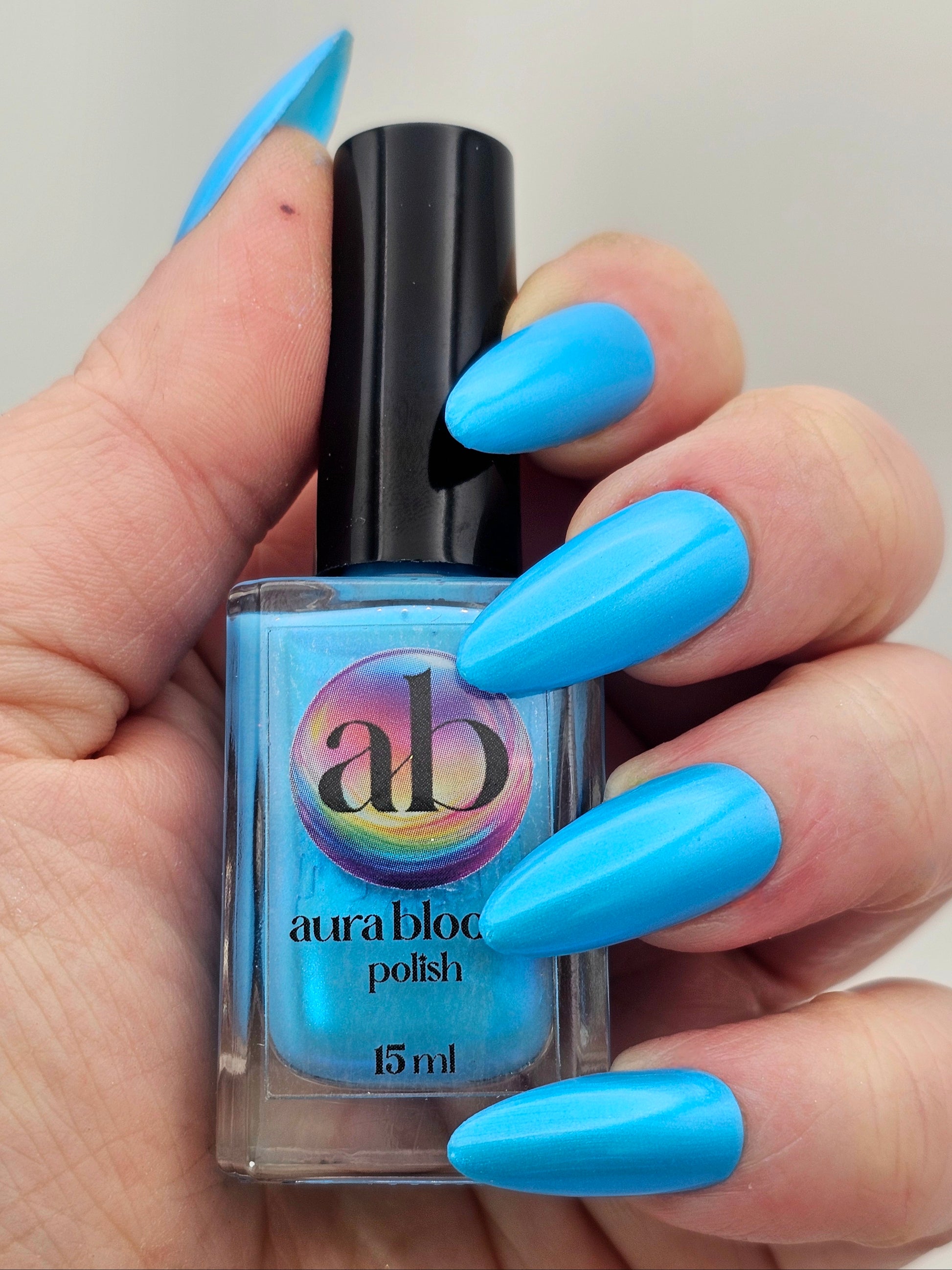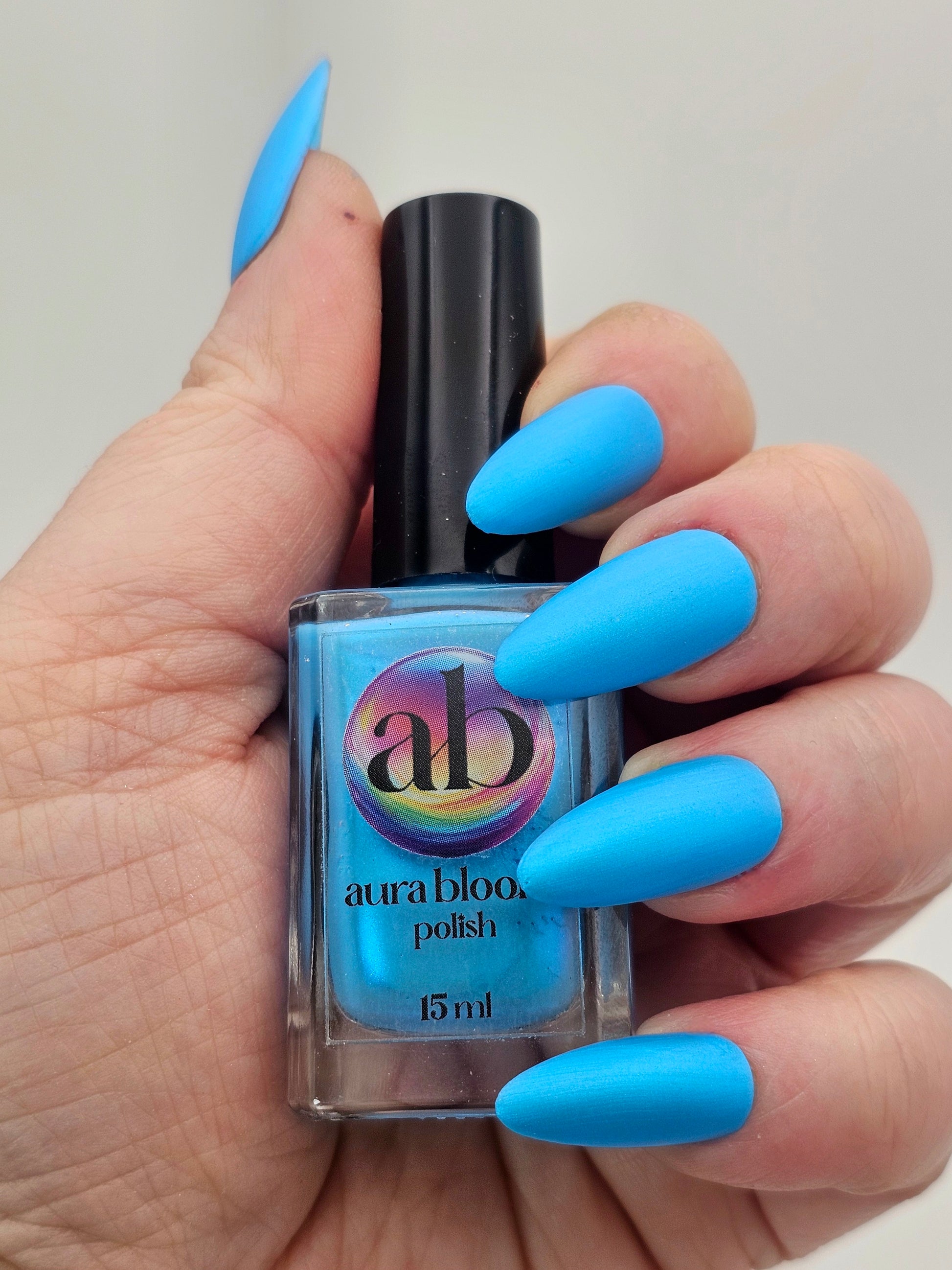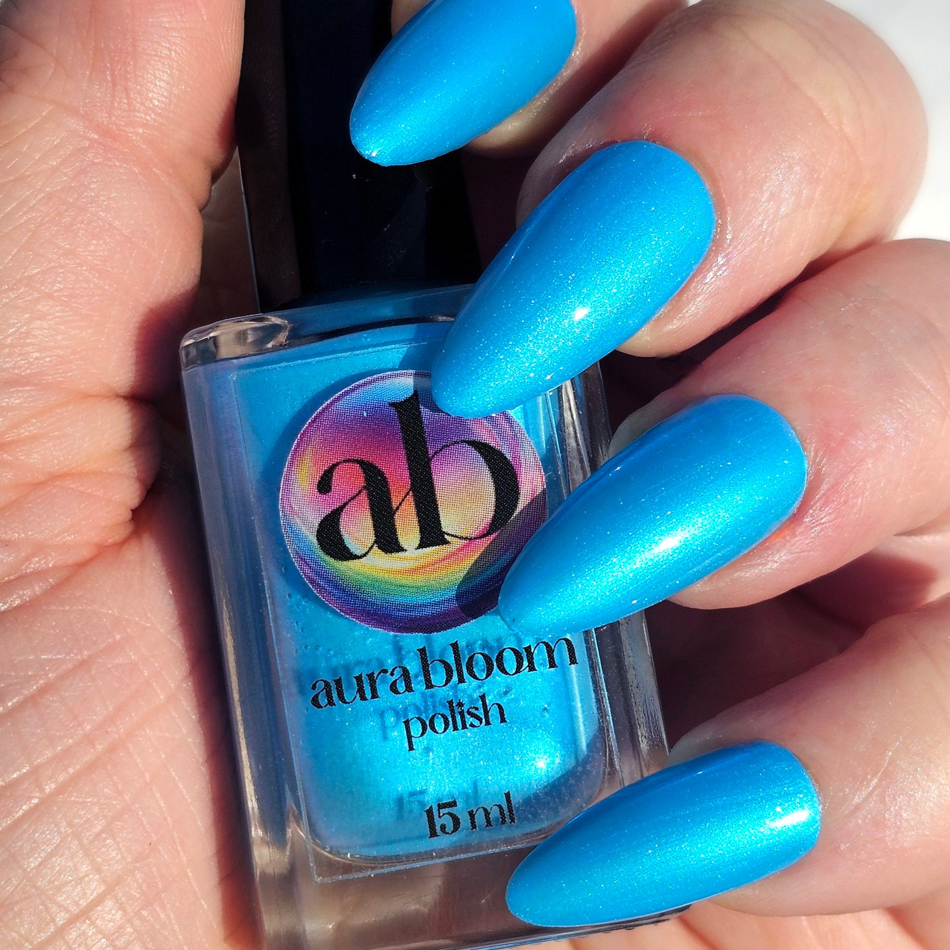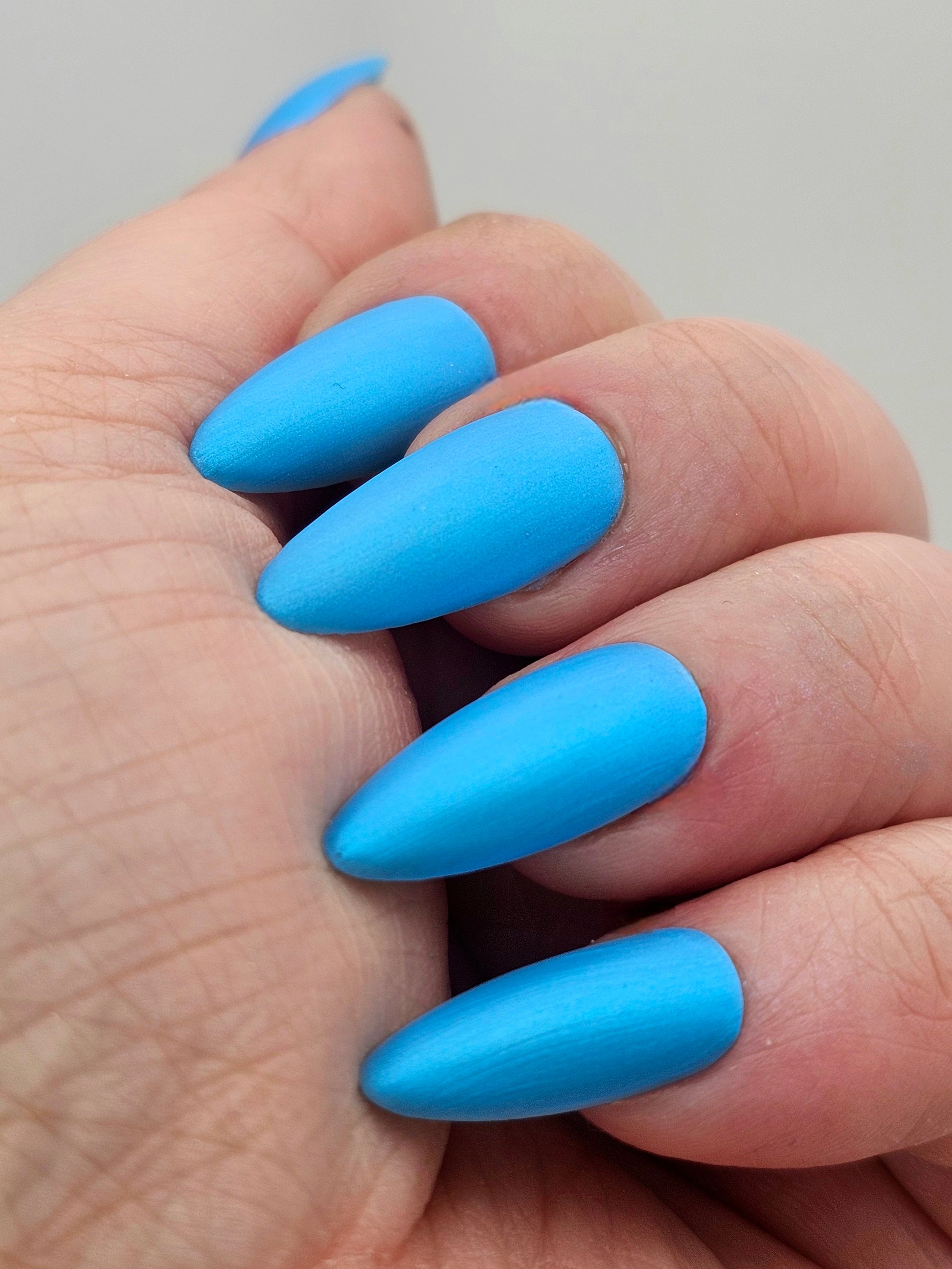 Crush ICE is a baby blue polish with a bright blue shimmer. Photos show this polish with our Flash Freeze QDTC and some photos are with the Magical Matte Top Coat.
