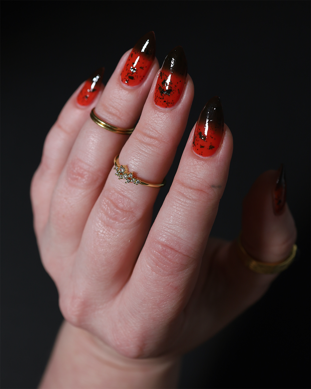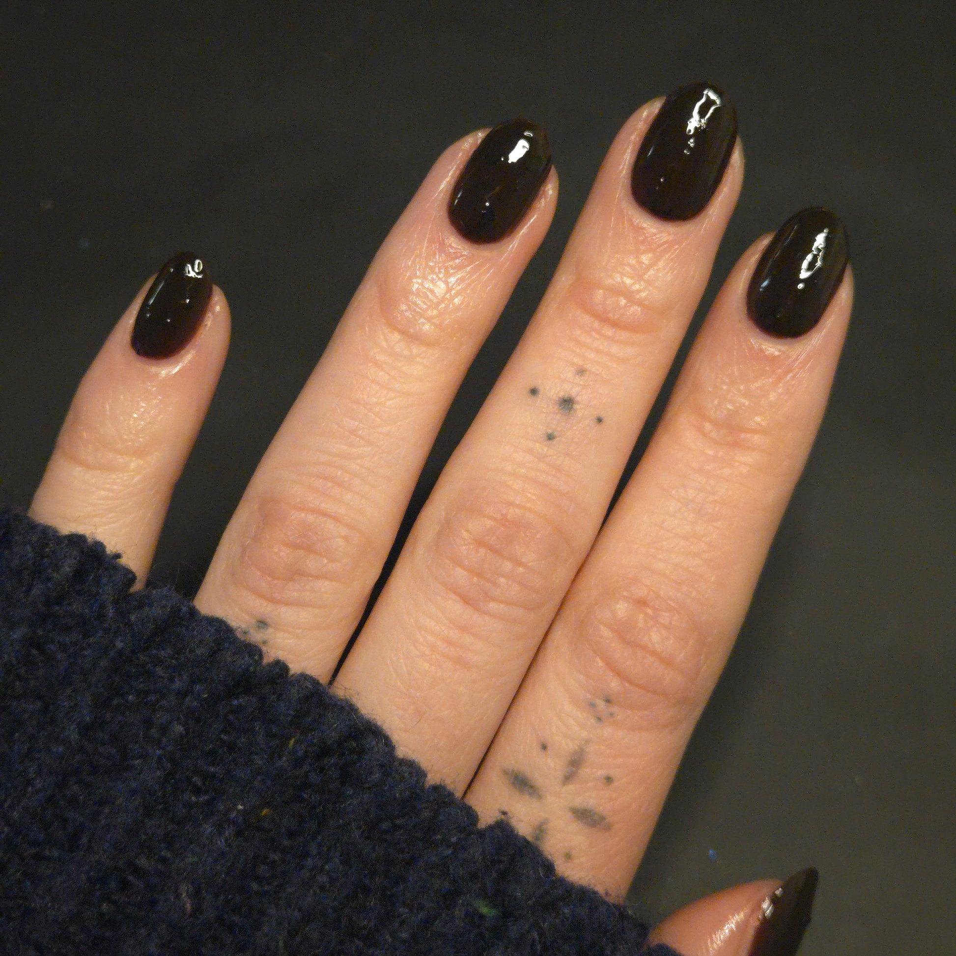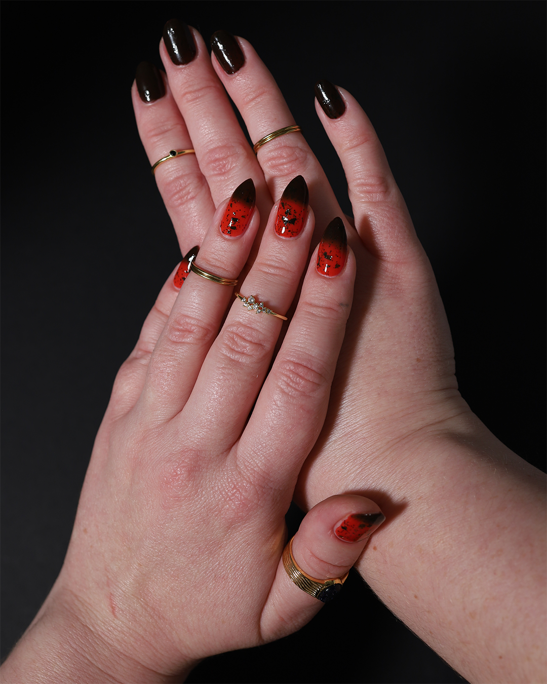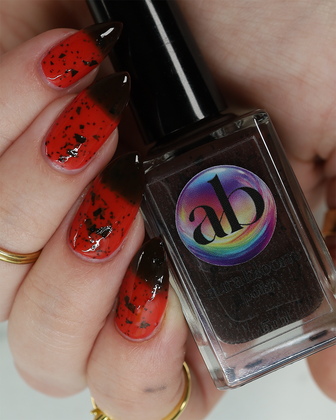 It's not me, it's you is a red to black thermal polish with small and large size black shreds *Please note, this polish may appear more of a blackish brown in some temps or lighting due to the composition of the thermal pigment*