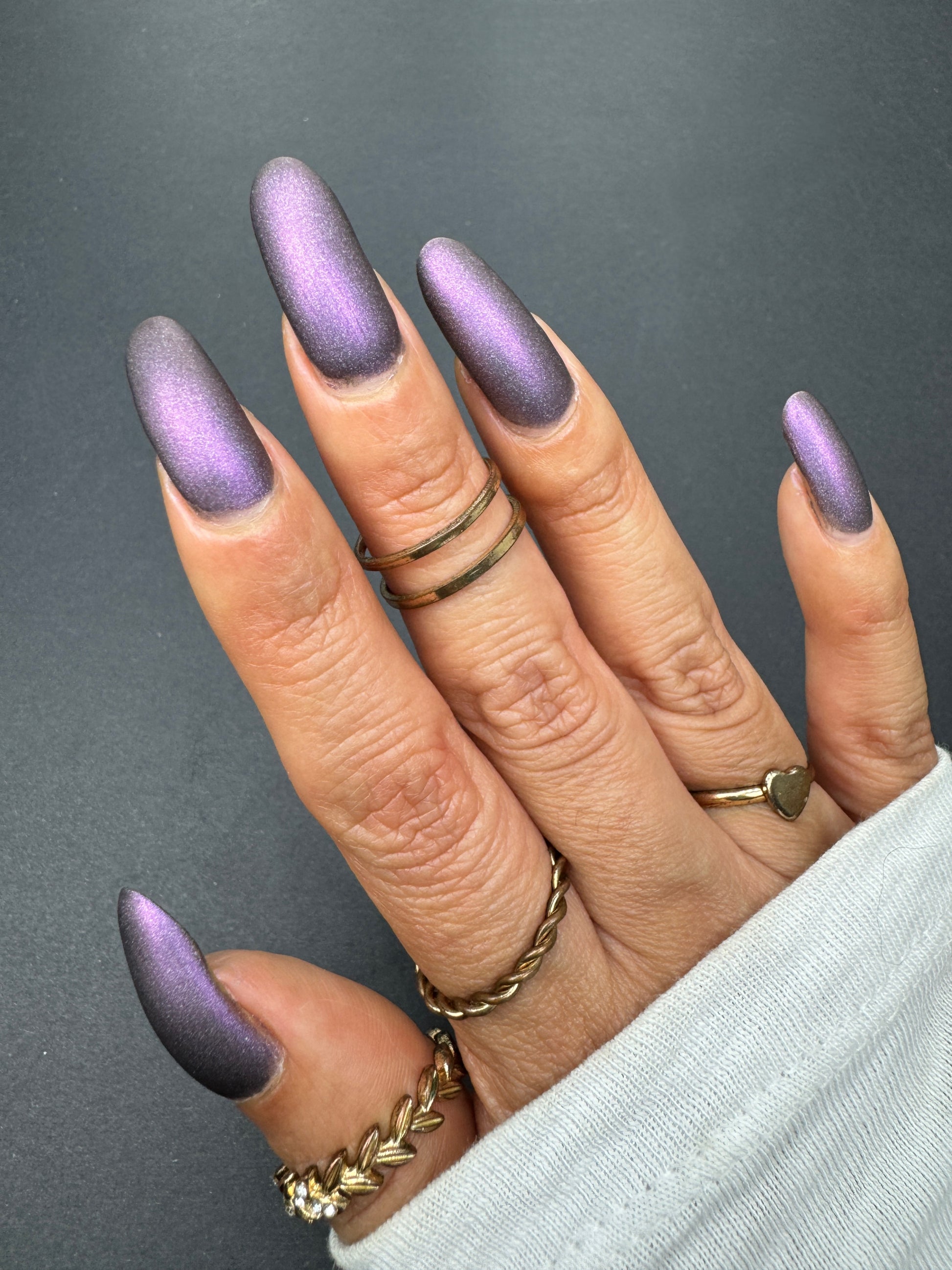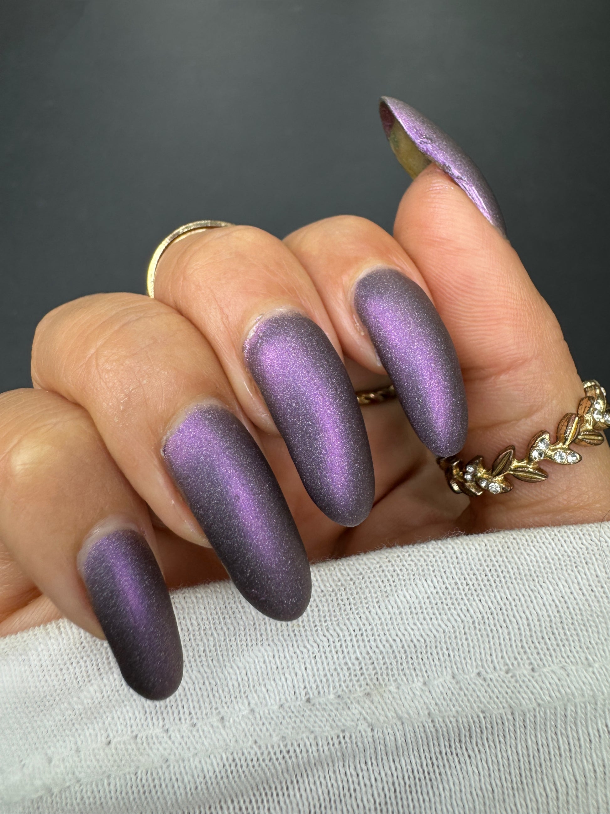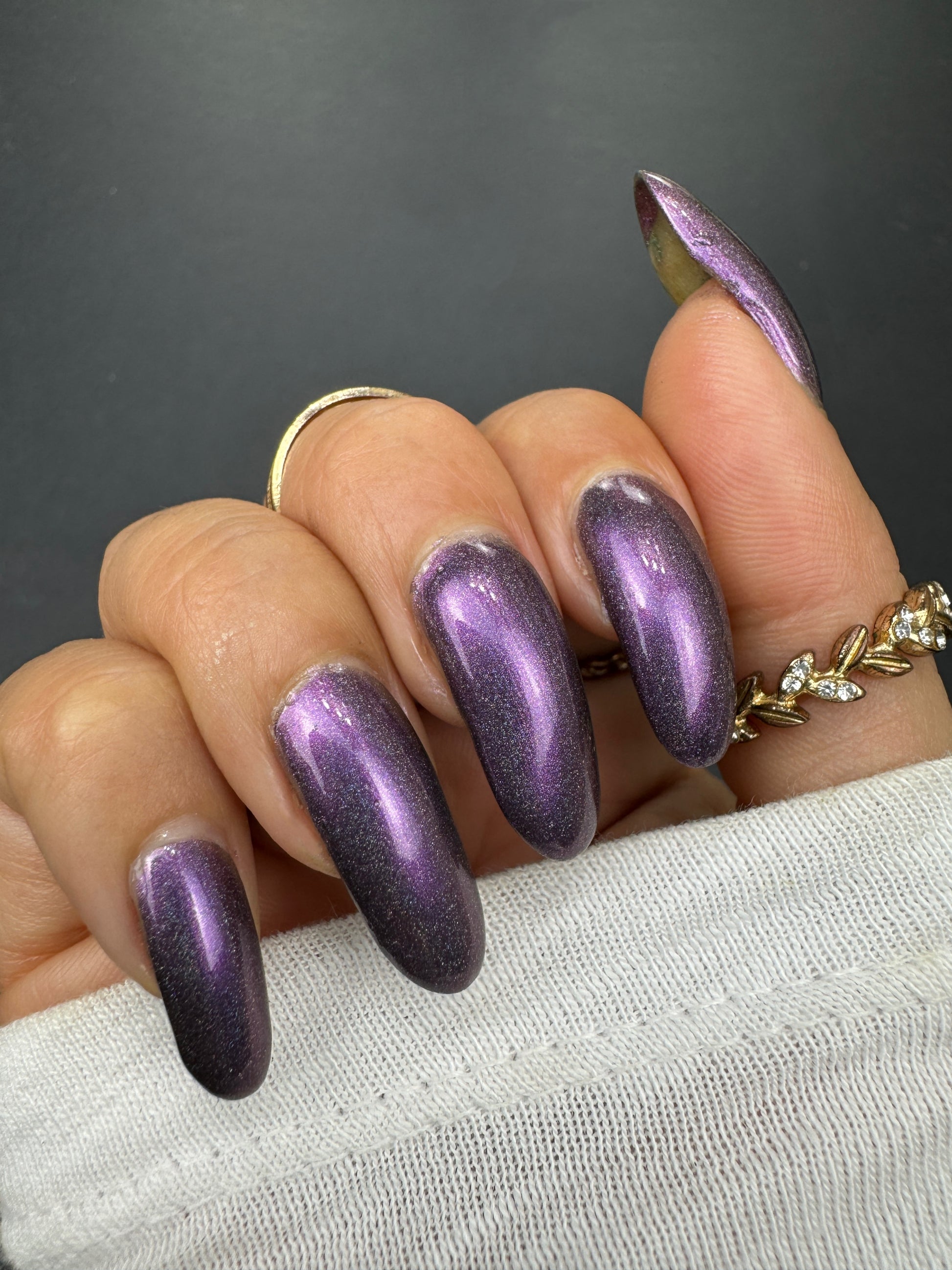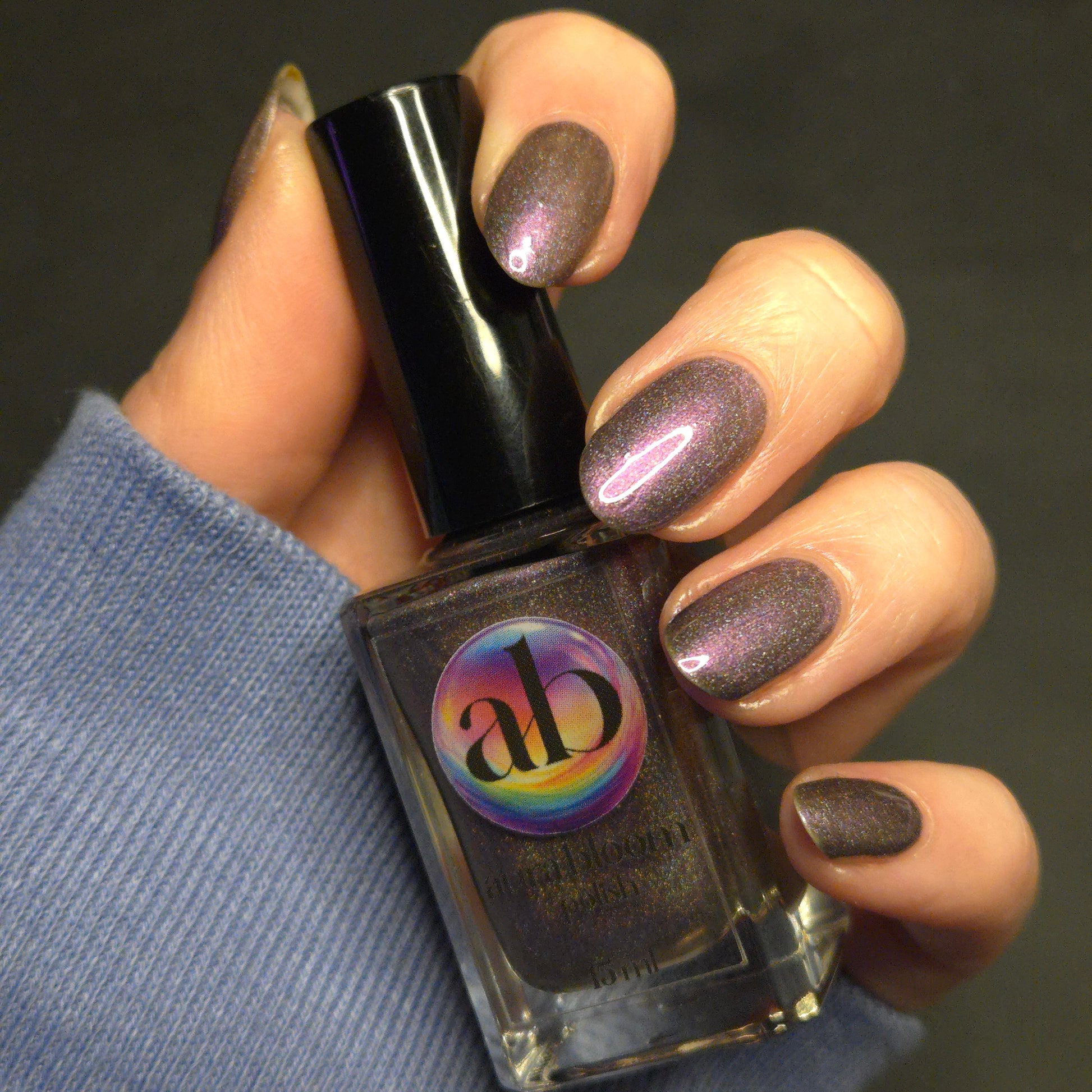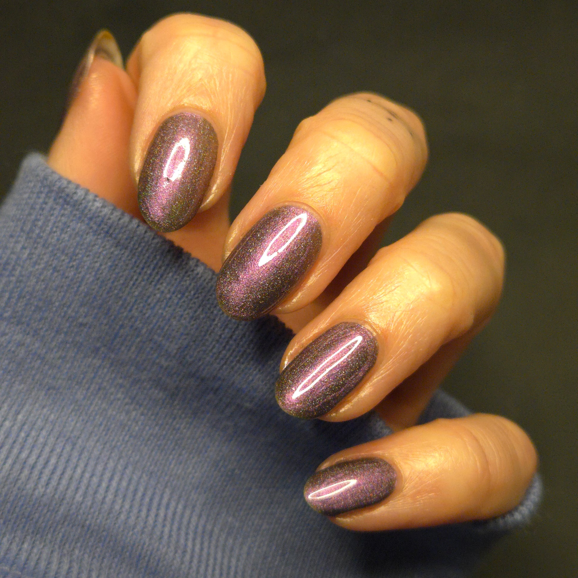 Wandering Wisteria is a black linear holographic polish with a light purple pearlescent shimmer.