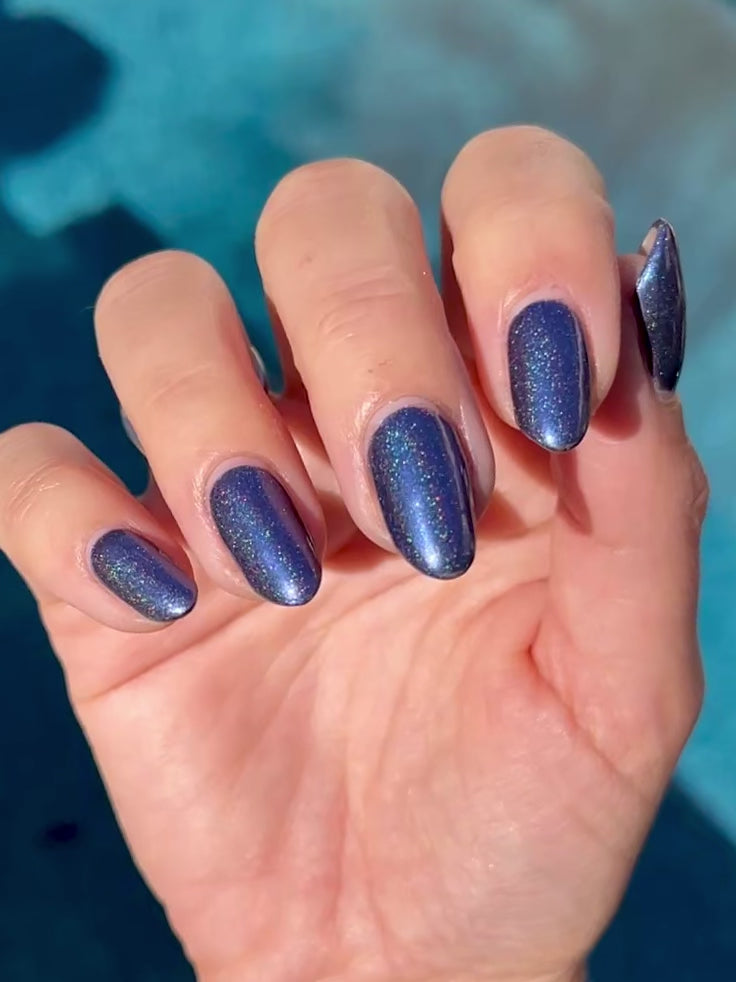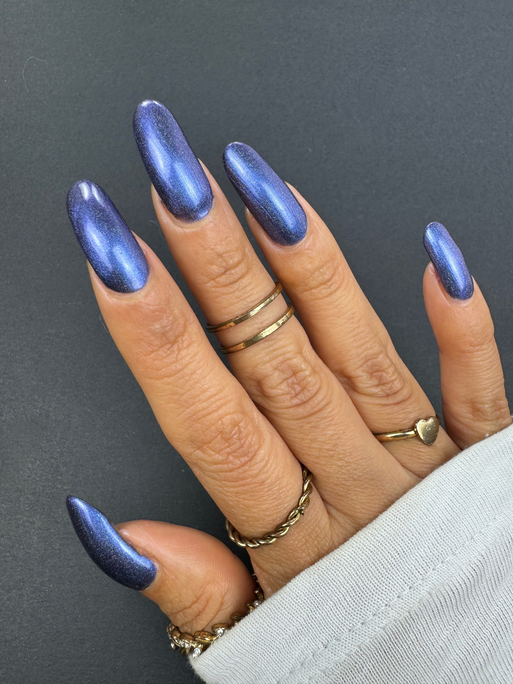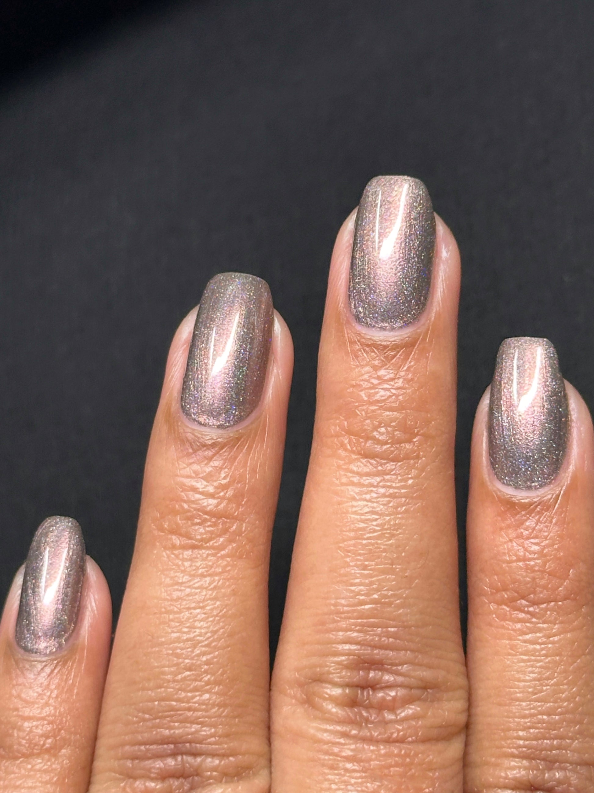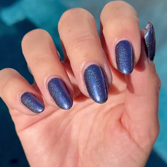 🌌Nightfall Nimbus is a black linear holographic polish with a medium-dark blue pearlescent shimmer. Looking up at the captivating midnight sky, as the storm clouds roll in and eclipse the moon, these clouds will shower down upon the forest canopy soon.