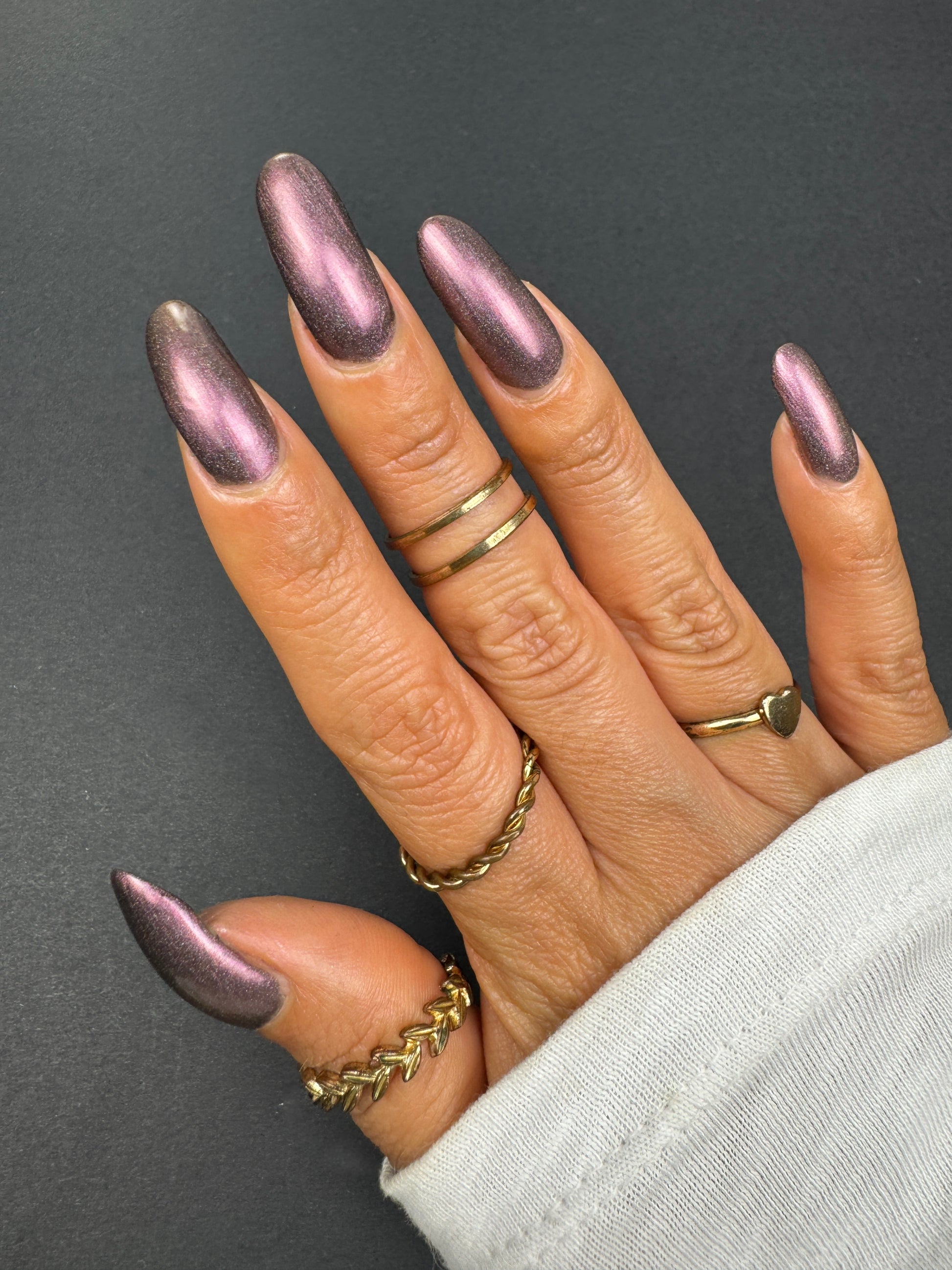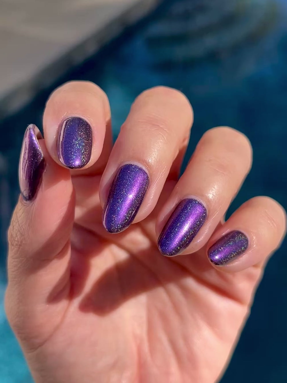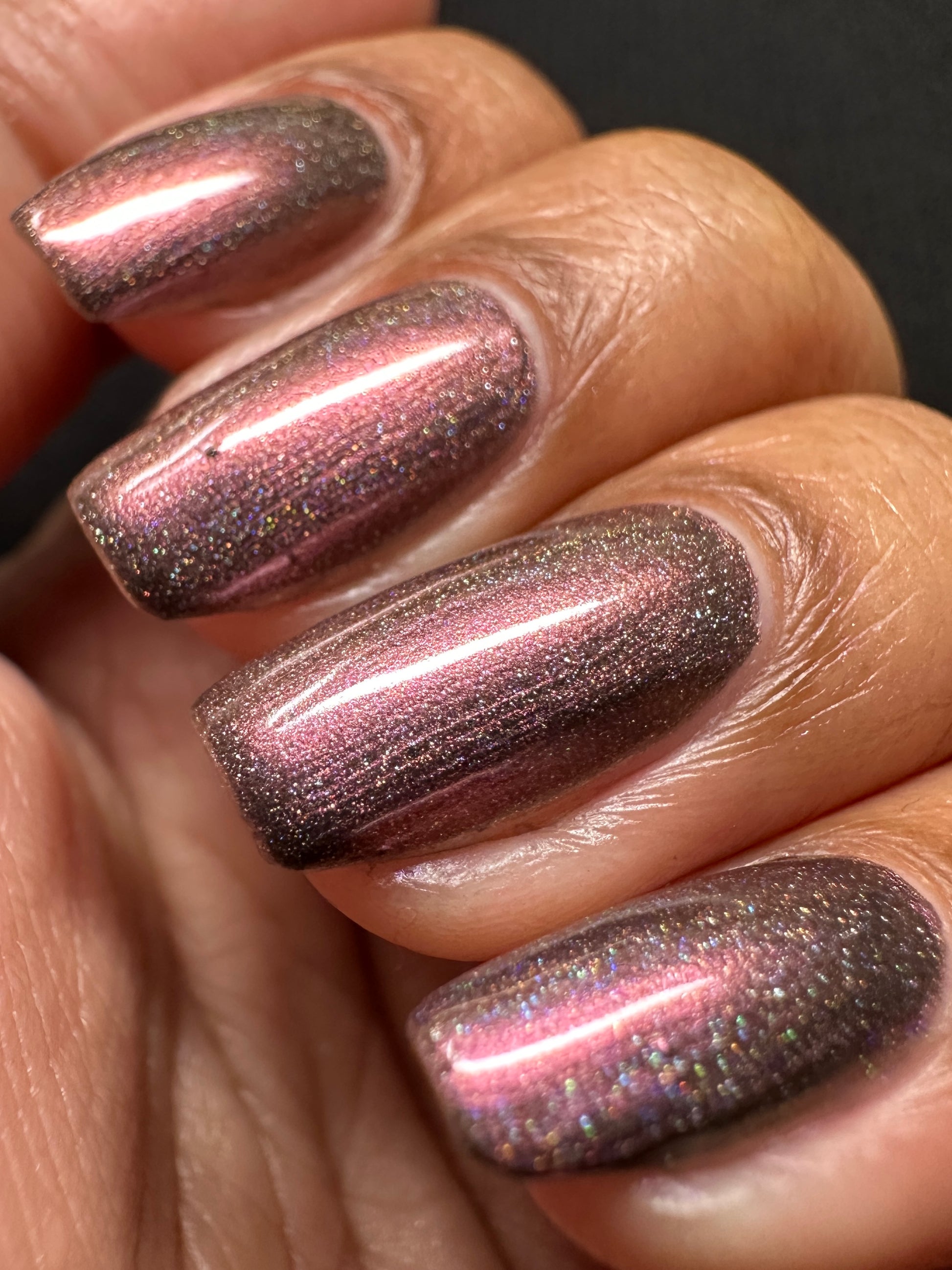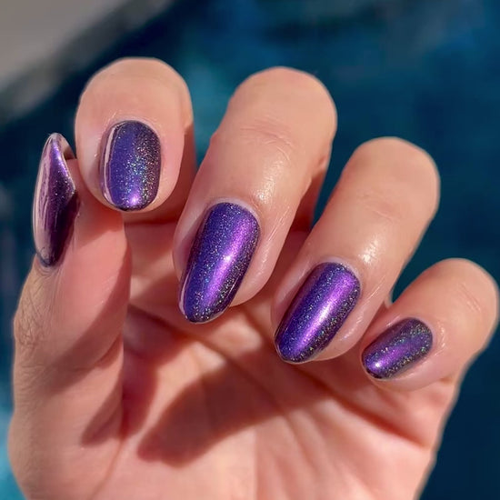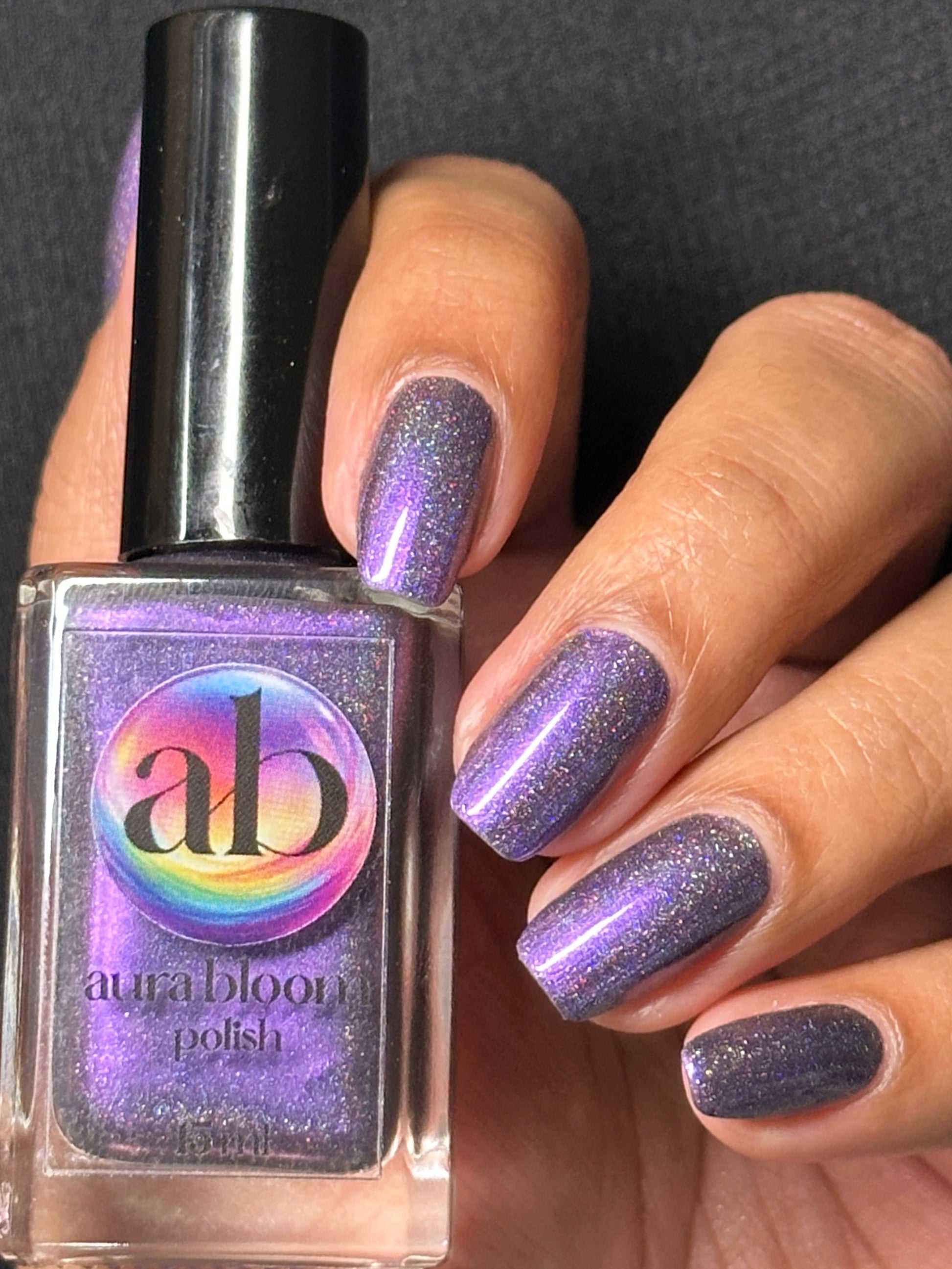 🔮Arcane Amethyst - a black linear holographic polish with a rich purple pearlescent shimmer. When the moon hits the glow of the unearthed raw amethyst, you can feel the energy humming as it calms and protects the forest.